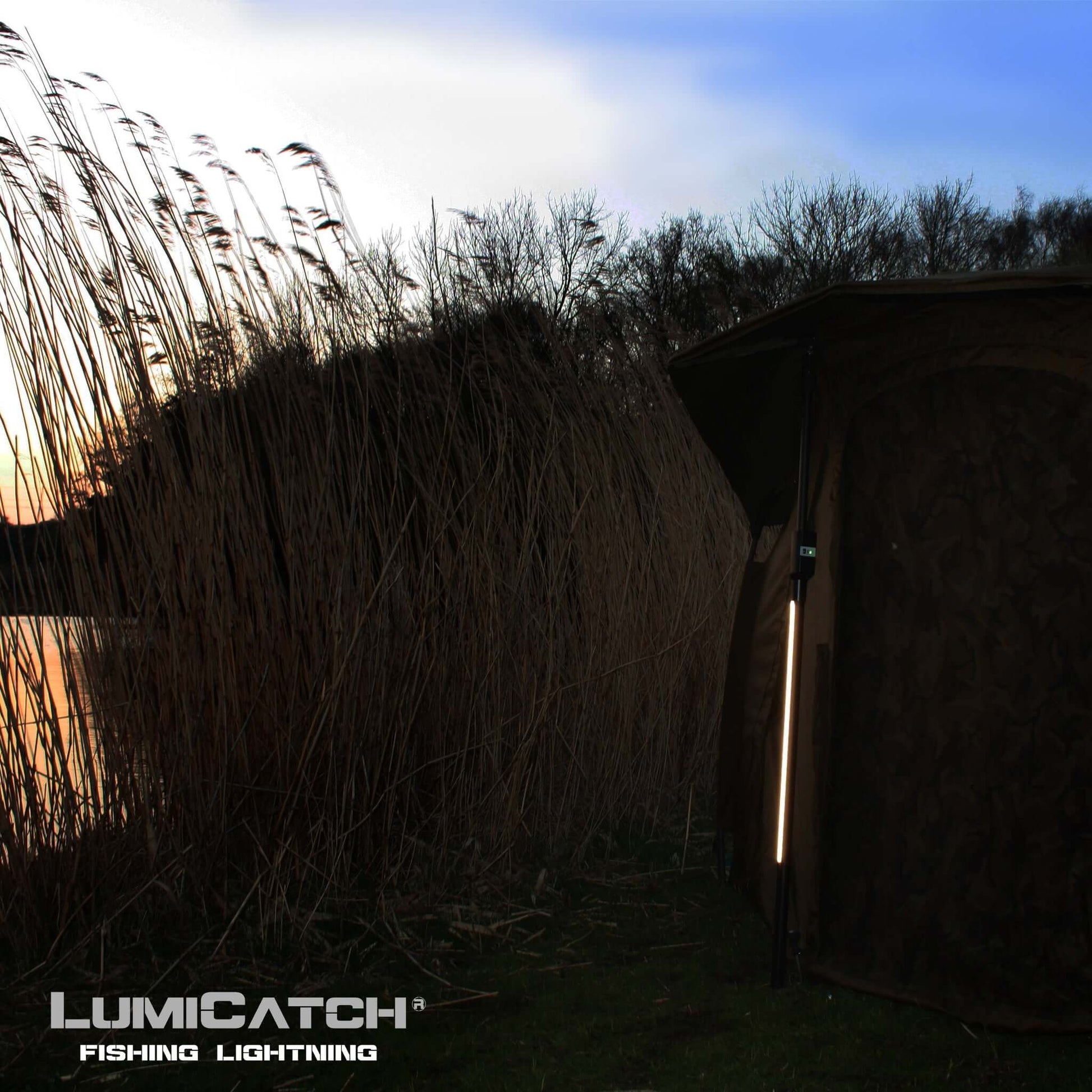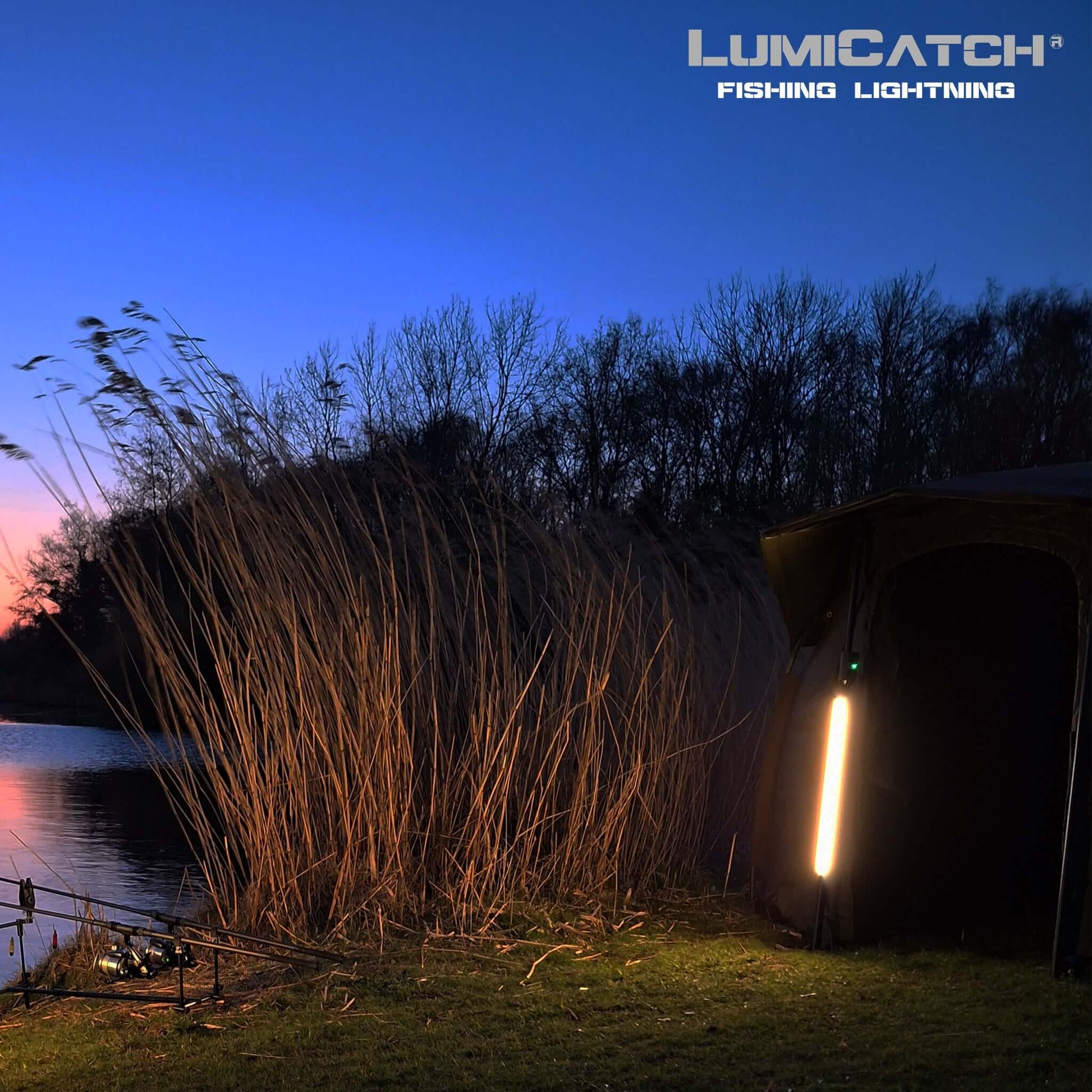 The LumiCatch Base is a rechargeable and dimmable LED light, specially designed for carp anglers, campers, and outdoor enthusiasts. As the core unit of the LumiCatch system, it works manually via the on/off button and—once paired—also through the user-friendly LumiCatch app (Android & Apple).